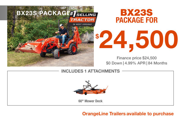 5.99% A.P.R. financing for 84 months on purchases of new Kubota BX23S equipment from